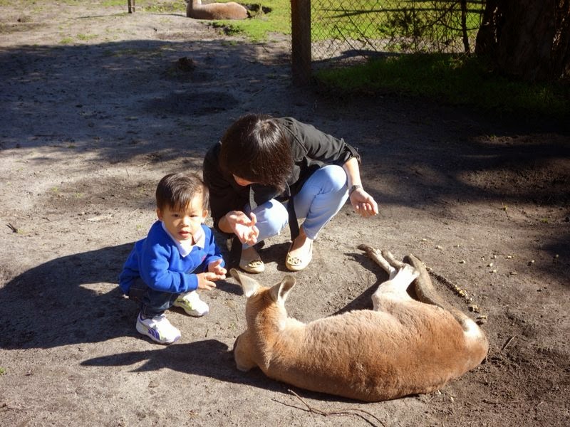 Situated inside Whiteman Park (which itself is a nice park to walk around, but we didn't have the time to do so), Caversham Wildlife Park is a great place to get close to animals... lots of kangaroos roaming around and food are available for visitor to help feed the kangaroos. There are a lot of kangaroos around so everyone get their chance to feed... but some kangaroos are so full that they are not so keen to eat, so just need to keep trying and hopefully you will find the hungry ones....